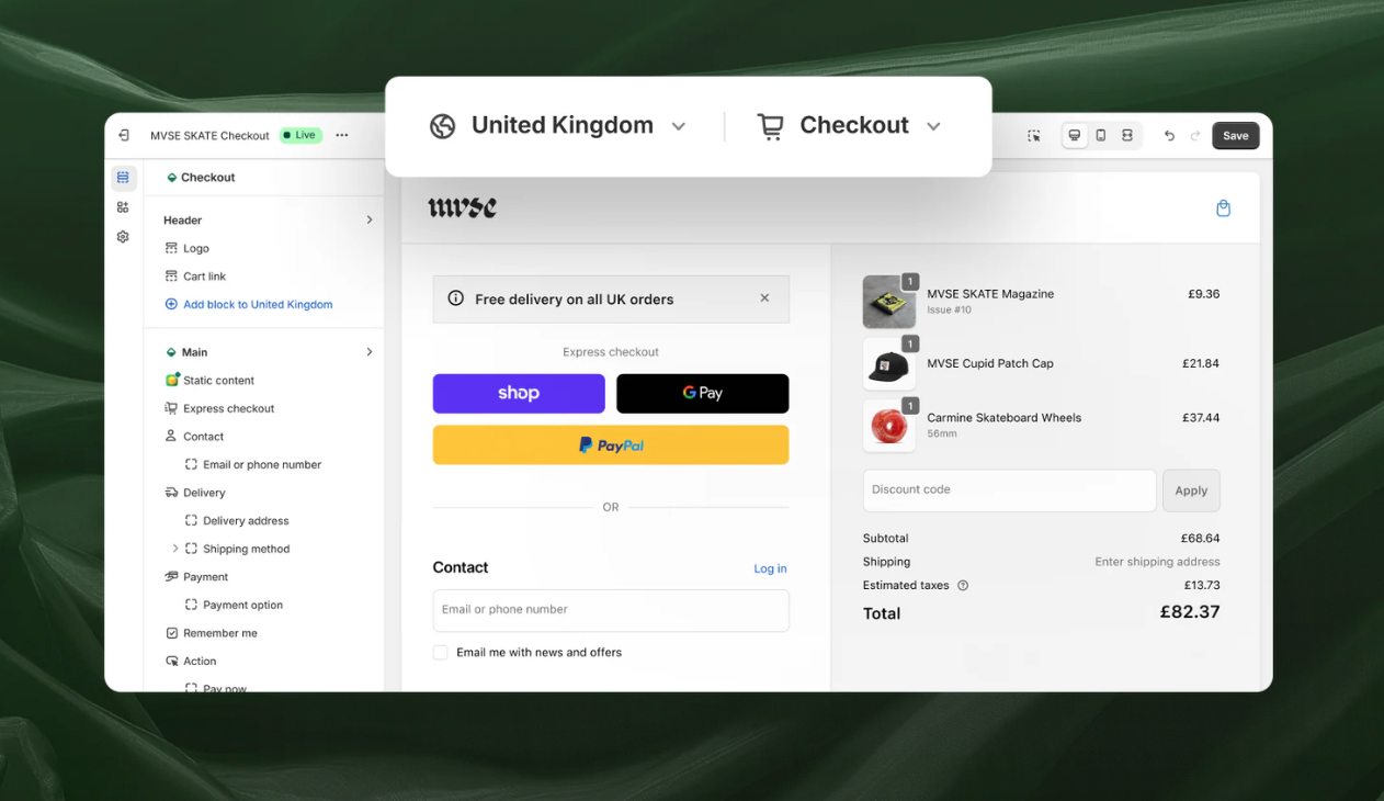 Localized Checkout & Accounts: For global merchants and B2B sellers, you can now tailor the checkout and customer account pages per market or customer group . For example, you might have different messaging, branding, or fields for EU customers vs. US customers, or a wholesale client login that shows different info than retail customers. This level of customization was previously only achievable with complex coding or separate stores; now it’s built into Shopify’s editor. It solves the challenge of providing a localized experience under one store umbrella, which is crucial for conversion and compliance across different regions.